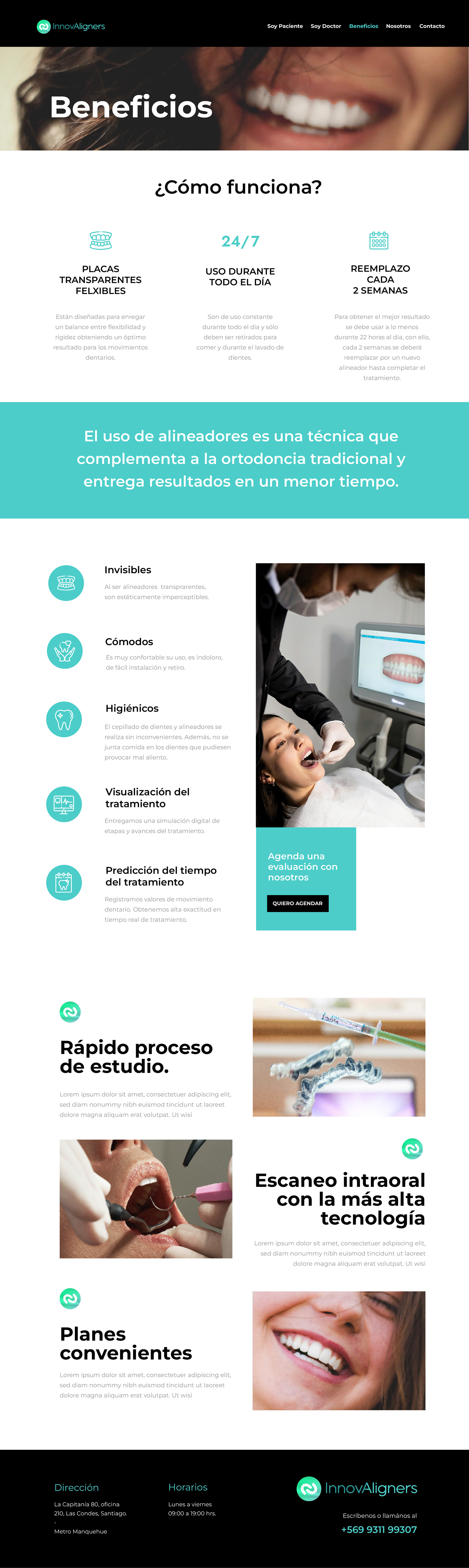 Creación y diseño de sitio web para alineadores dentales transparentes. www.innovaligners.cl