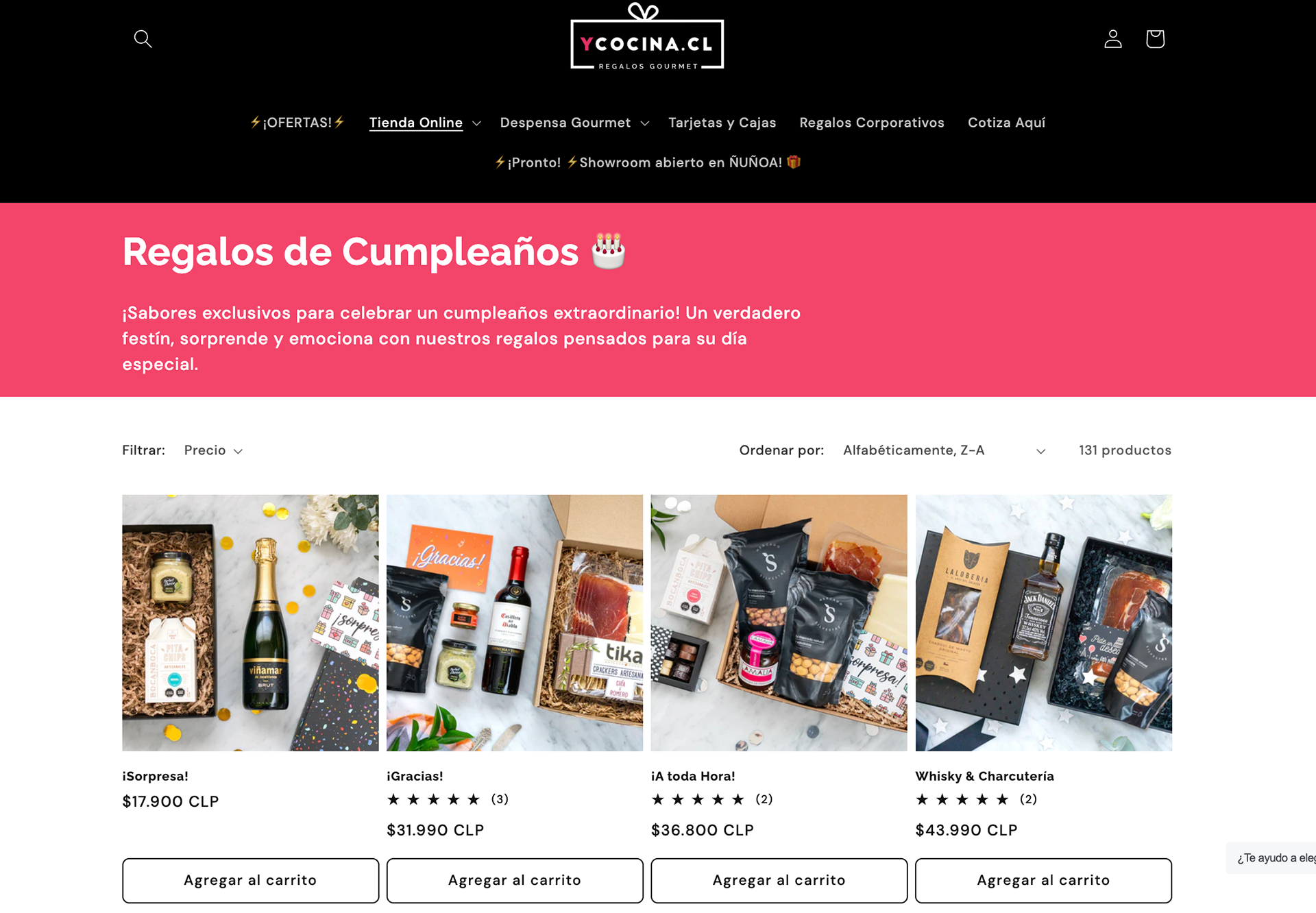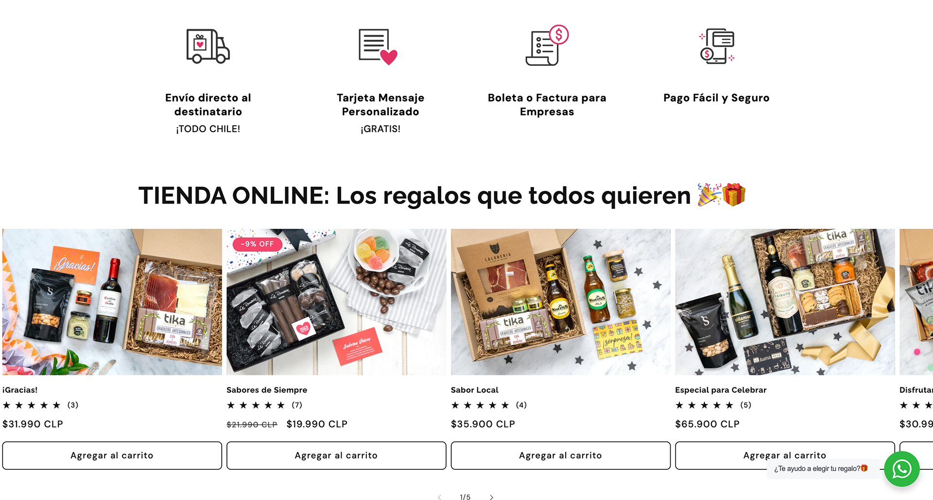 Diseño de plantilla, administración y configuración de colecciones, productos, medios de pago, envios, mailing masivos para tienda online de regalos gourmet en plataforma Shopify.