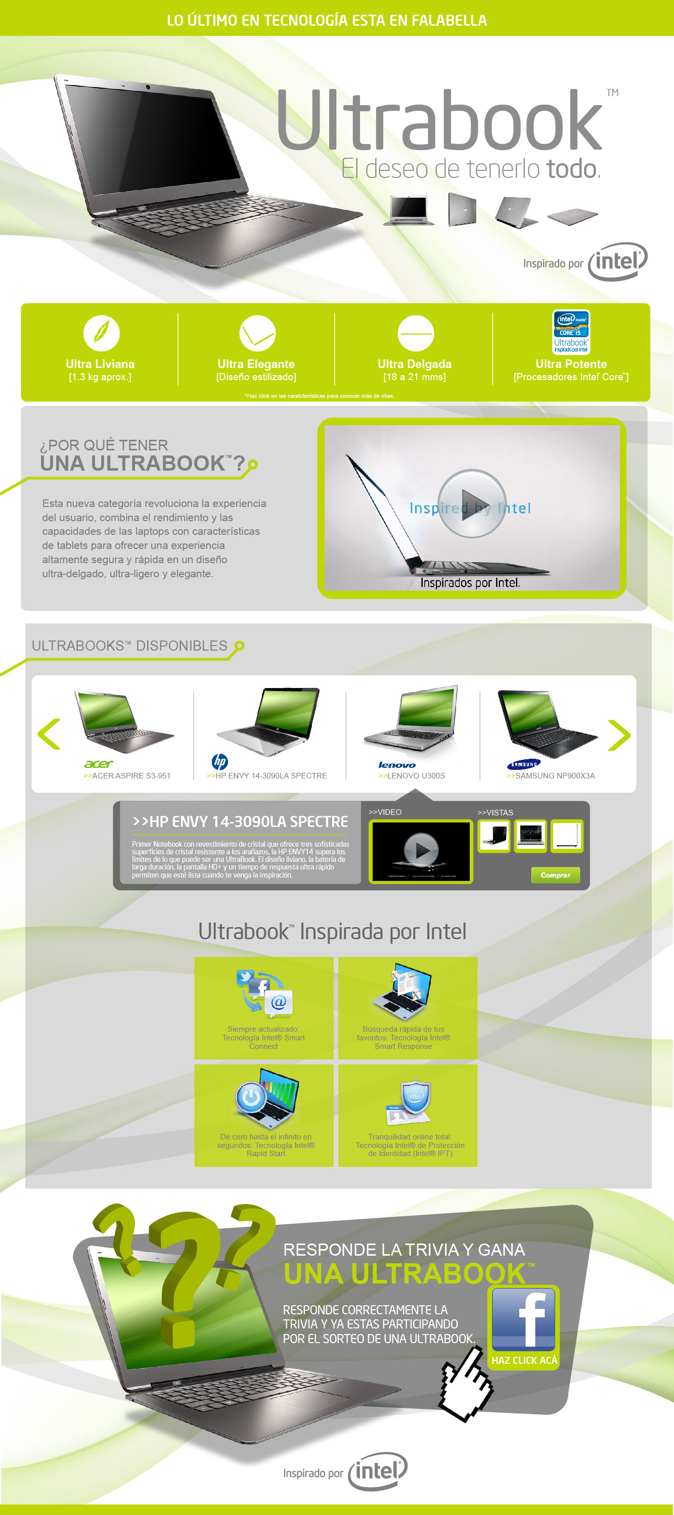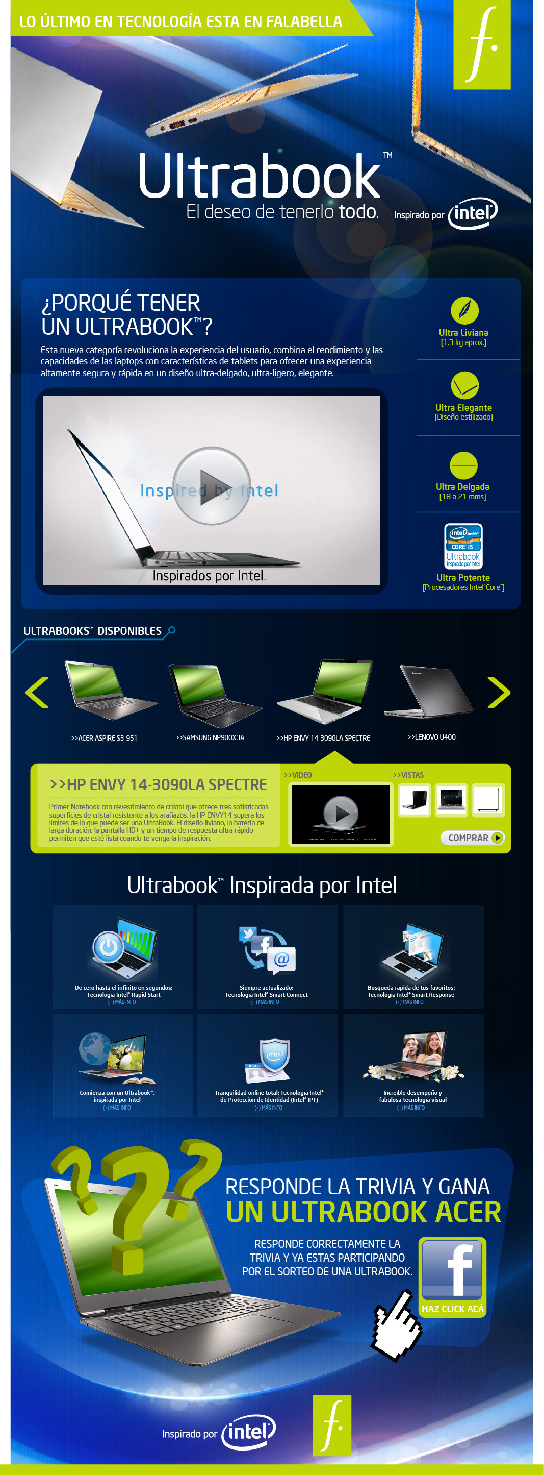 Diseño de Landingpage lanzamiento Intel Ultrabook para grandes tiendas de retail. Trabajo realizado en agencia p-per.com