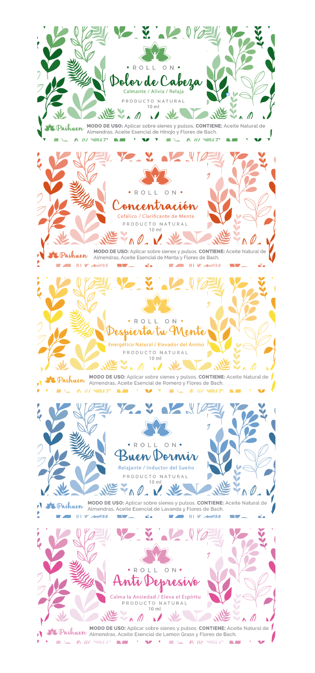 Creación de identidad y diseño de etiquetas para productos naturales y terapias Paihuen.